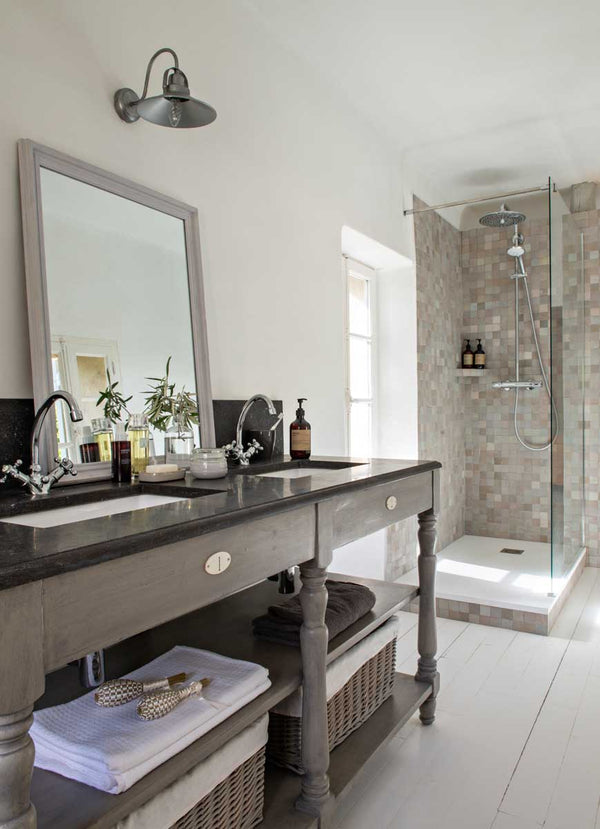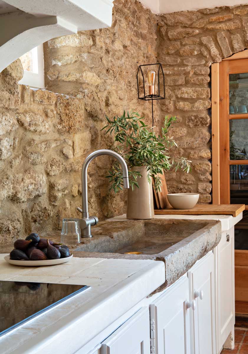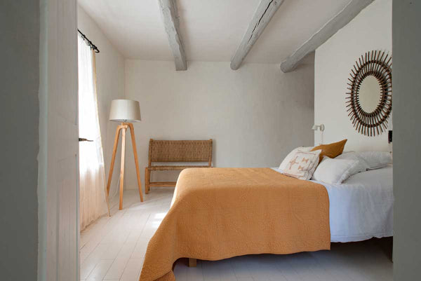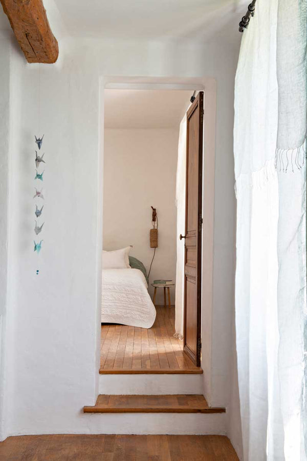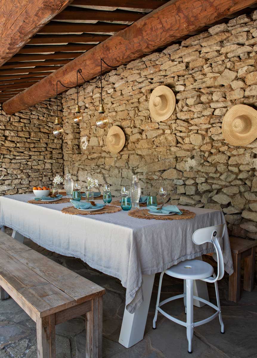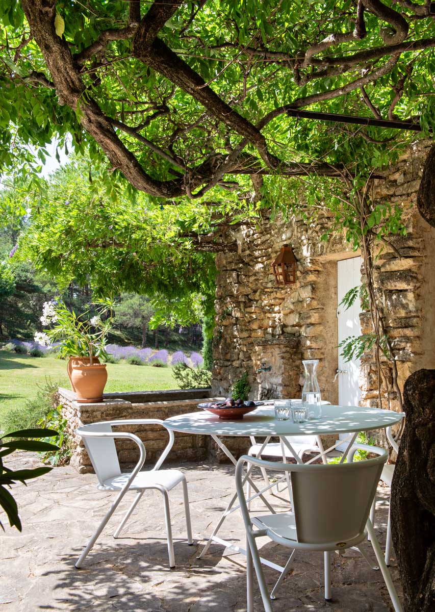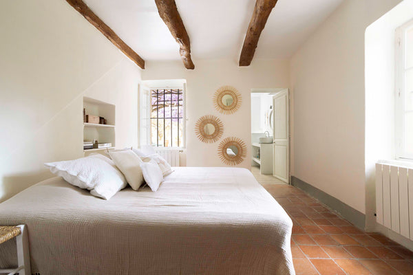 Le Mas Couvaloup is decorated in a pared-back Mediterranean style, fairly
